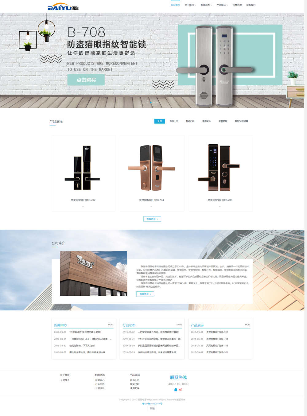 珠海市佰誉电子科技有限公司成立于2003年,是一家专业致力于智能产品研发、生产、销售于一体的高新技术企业。公司主营产品有:3C数码防盗器、智能芯片、智能指纹锁、智能开关、智能插座、智能家居系统解决方案、酒店智能系统整体解决方案等。